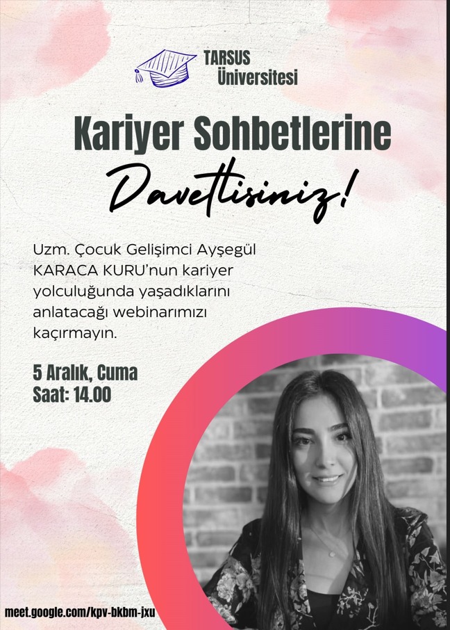 Programımız Kariyer Sohbetleri etkinliğine Uzm.Çocuk Gelişimci Ayşegül KARACA KURU konuk olmuştur.